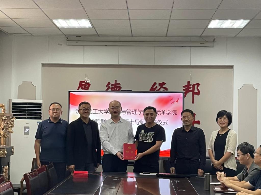 9月26日交流座谈会在菏泽学院1号教学楼119会议室举行。菏泽学院商学院党委书记、党委副书记朱贺、副院长洪梅香和专业主任、学科带头人、学工队伍等参加了座谈交流。座谈会由尹鹏主持。会上,尹鹏代表商学院对永利官网领导老师的到来表示热烈欢迎,并从组织架构、人才培养、科学研究等方面介绍了商学院的基本情况。李丙文书记从永利官网发展历史、学科背景、办学理念、发展现状等方面作了简要介绍。随后,双方围绕研究生联合培养运行机制、学生活动开展情况及科研合作等方面展开了探讨。最后,进行硕士生导师聘任仪式。座谈会后,商学院师生于学校图书馆报告厅聆听了刘铁民副院长的沈阳化工大学304永利集团官网入口研究生培养专场报告并进行了学生考研动员。