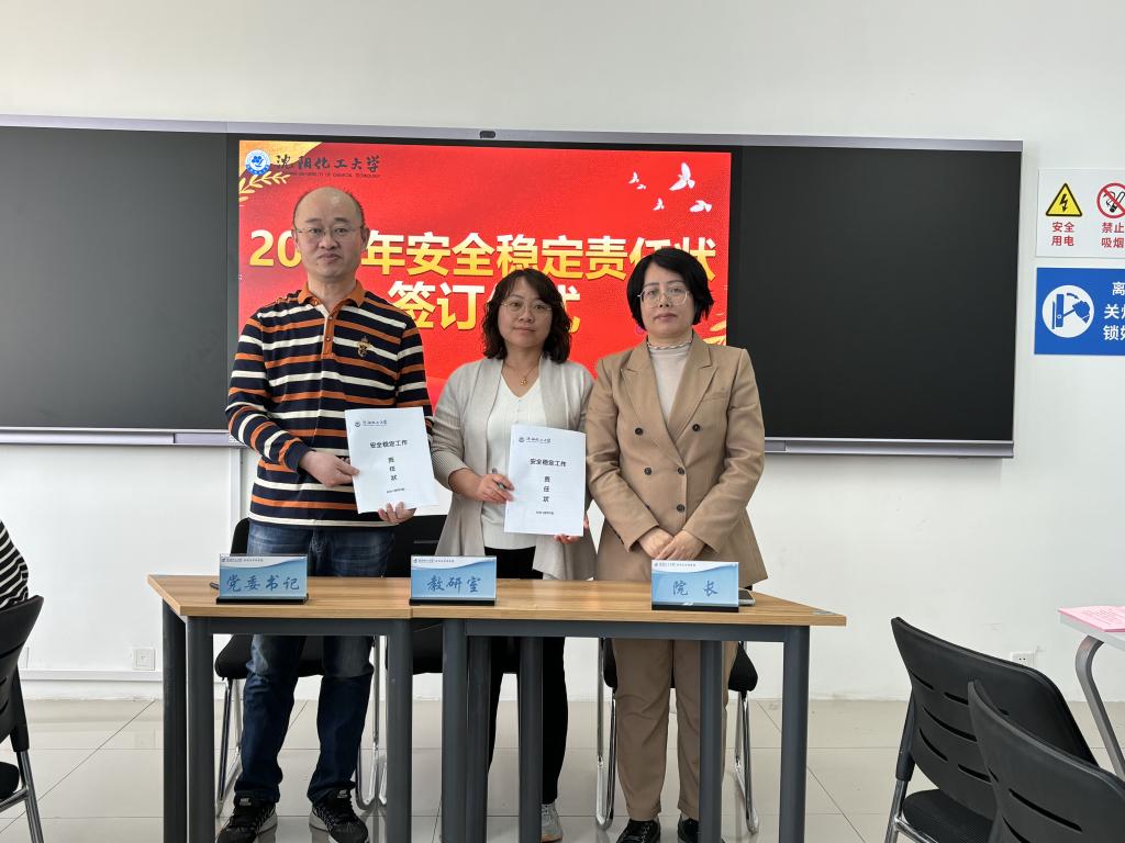 会上党委书记、院长与各教研室、实验中心签订了《304永利集团官网入口安全稳定责任状》,李丙文就全面贯彻落实学校2024年安全稳定会议精神提出要求,强调要牢固树立安全发展理念,强化底线思维、红线意识,夯实学院高质量发展的安全根基。要强化组织领导,学院领导班子同志要按照“一岗双责、党政同责、管业务必须管安全”的要求,落实好安全稳定主体责任。要常态化开展安全隐患排查整治,强化源头防护,细化管理措施,层层落实到人,用高质量的安全稳定工作保障学院各项事业高质量发展。