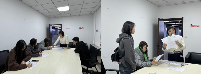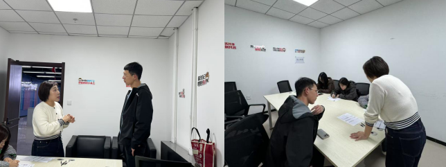 抵达公司后,企业人事部禹经理热情接待了我校师生,双方就人才培养、岗位需求及职业发展路径进行了深入交流。禹经理深入讲解了各个岗位的工作内容、职责要求以及员工在企业内的未来职业发展路径,让同学们对苏宁易购的人才培养体系和职业晋升空间有了全面认识。随后,同学们认真填写了职位申请表,表达了对心仪岗位的求职意向。在禹经理的精心安排下,3位同学分别进入对应岗位的面试环节。面试过程中,同学们充分展示了自己的专业知识、实践能力和综合素养,与面试官进行了深入交流。