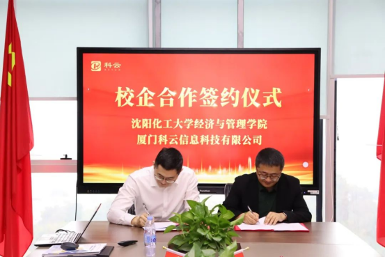 在交流过程中,双方就建立长期稳定的实习基地、开展产学研合作项目以及共同申报科研课题等合作意向进行了探讨,并初步达成了合作框架,并举行了“实习就业基地共建 校企合作”签约仪式,校企双方均表示将积极整合资源,发挥各自优势,为学生创造更多的实习实践机会与就业岗位,实现校企互利共赢、协同发展的目标。沈阳化工大学304永利集团官网入口副院长刘铁民、教师代表陈丹、徐婧玥,厦门科云信息科技有限公司院校事业部副总经理林英耀、辽宁省总经理胡火坤、科云教育研究院副院长林剑平等参加了签约仪式。
