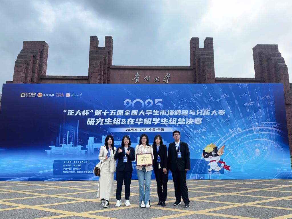 近日,第十五届全国大学生市场调查与分析大赛研究生组及在华留学生组总决赛于贵州圆满收官。作为国内市场营销与统计学领域的顶级赛事,本次大赛吸引了全国1184所高校、超34万名学子踊跃参与,其中研究生与留学生赛道汇聚589所高校同台竞技。在这场高规格赛事中,我校304永利集团官网入口参赛团队凭借深厚的专业功底与卓越的协作能力,一举揽获国家级二等奖1项、省级一等奖1项、二等奖2项、三等奖4项,展现出强劲的学科实力。