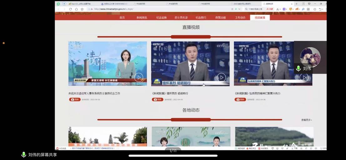 通过访问中华英烈网,带领支部党员了解烈士纪念设施地图,重点访问了辽宁省国家级和省级重点烈士纪念设施。党支部书记刘伟老师为全体党员详细介绍了抗美援朝烈士陵园、辽沈战役烈士陵园、雷锋纪念馆等爱国主义教育基地,叮嘱青年学生要铭记革命先烈的英雄事迹,弘扬爱国主义精神,多到爱国主义教育基地进行参观学习,为自己进行精神洗礼。