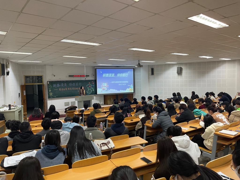 2022年10月22日18时30分,304永利集团官网入口于通明楼338教室召开了面向2019级和2020级本科生的考研指导会。会议由王怀老师主持,王蓉院长进行经验分享与指导。本次会议在极大地鼓舞了2019级本科生考研信心的同时,也为2020级本科生做出了细致的考研规划。