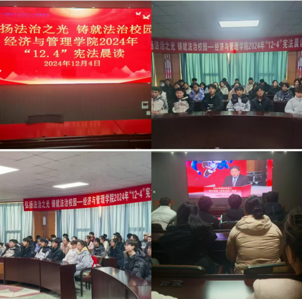为了引导学生深入学习宪法法治知识、增强宪法法治观念、树立宪法法治意识,提升法治素养,按照教育部印发的《关于开展2024年教育系统“宪法宣传周”系列活动的通知》以及省“宪法宣传周”有关部署要求,12月4日,304永利集团官网入口组织全院师生共同观看了全国教育系统“宪法晨读”直播节目,并同步参与了宪法学习环节。